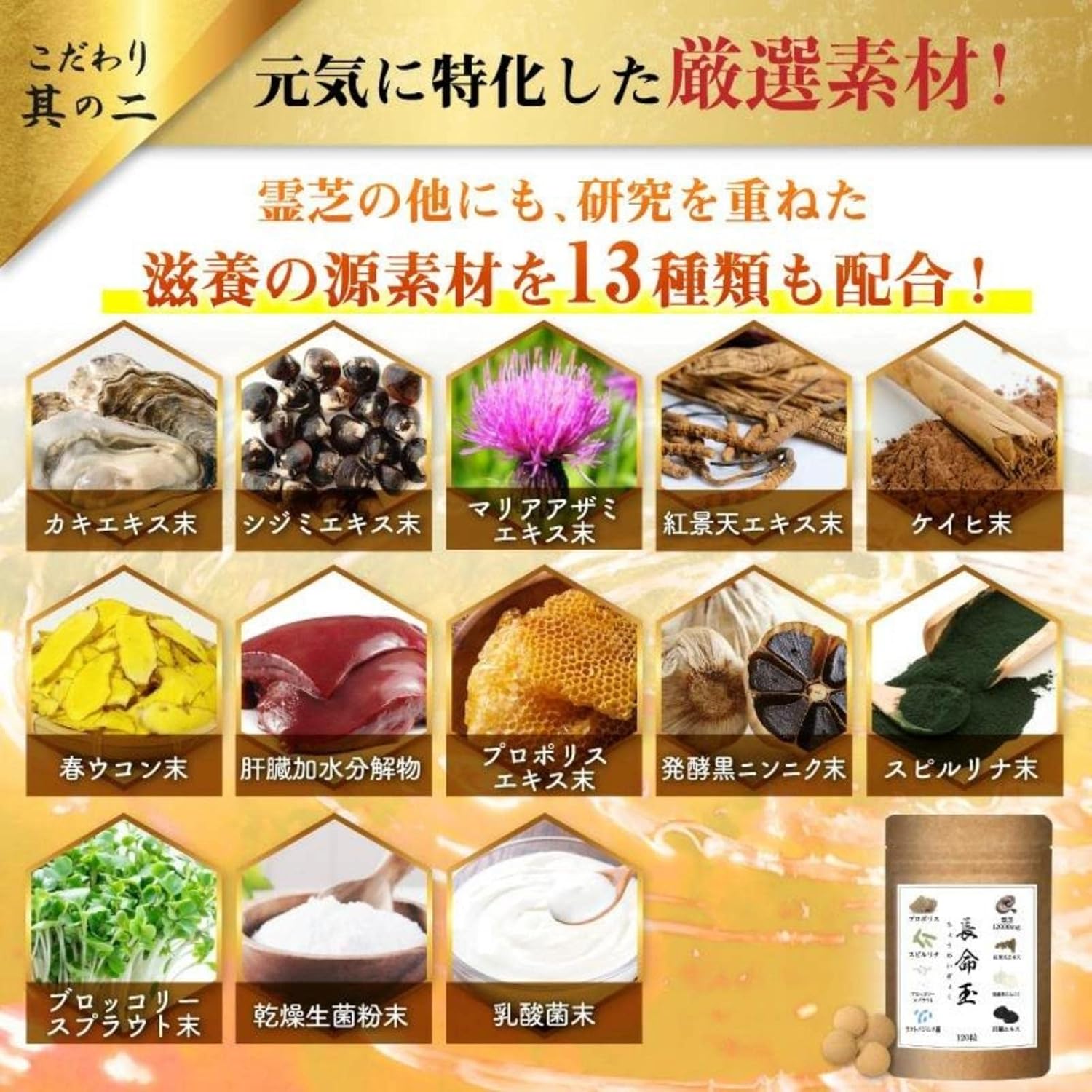 - [Easy to support your habits starting from 4 tablets per day. Long life ball: In addition to the famous "B-d glucan", it has a 12,000 mg of reiki turf that is rich in titrerpene, amino acid, calcium, and mineral, making it easy to take in